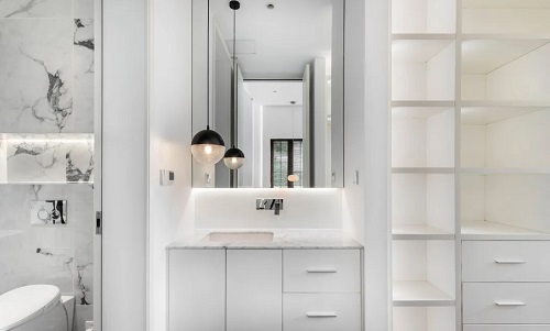 各种排污管、排水管,为了美观,一般都会在装修的时候包起来。主卫包管的时候,可以考虑先用隔音棉等做处理,这样就能减小楼上冲水噪声的影响。多数的包管位置应该会是淋浴位置,所以刚好可以做成淋浴房的置物壁龛,如果位置合适的话,侧面也可以做成马桶边的置物格子。