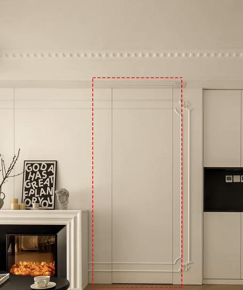 隐框门覆盖的涂料跟板材都要与墙面相对应,这样不会破坏墙面的平整和连贯,建议选择墙门一色,把隐框门的优势最大化发挥出来。