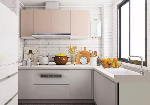厨房采用L型橱柜设计,让整个空间尽得其用,动线流畅,使用时更加顺手,白框玻璃移门,更加节省空间。